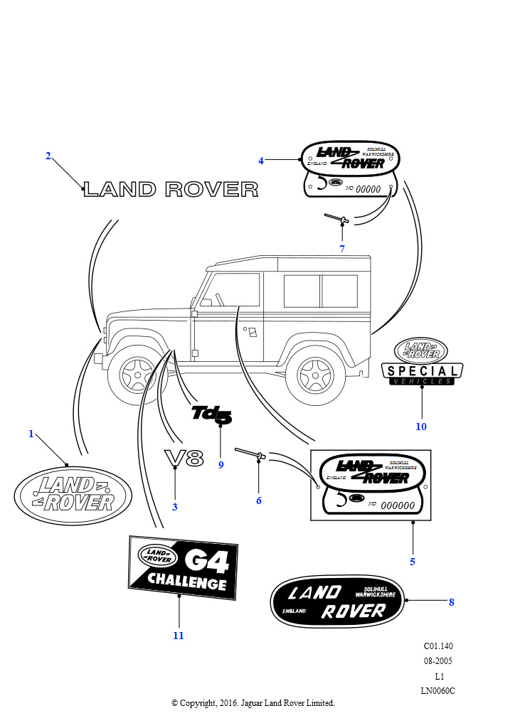 Категория: Наклейки и эмблемы - специальные выпуски (Station Wagon, 4,0 л V8 L/R EFI бензин, Автоматическая коробка передач, 90" Wheelbase, 50 LE, 2,5 л 5 цил. L/R, турбо дизель, 2.5L 4 цил.