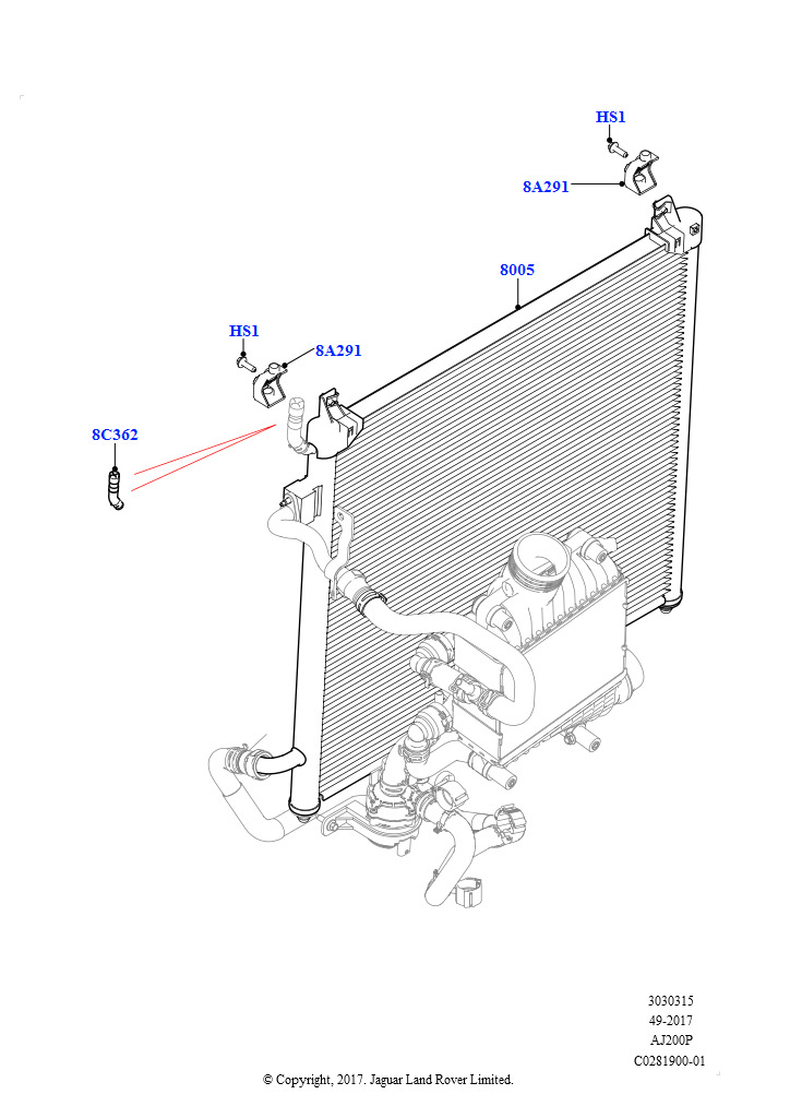 Радиатор/расшр.бачок для охл.жидк. (Сборка на заводе в г. Солихалл, Водяной охладитель наддувочного воздуха, Радиатор интеркулера, 2,0 л I4 High DOHC AJ200, бензин, 2.0L AJ200P Hi Discovery 5 2017