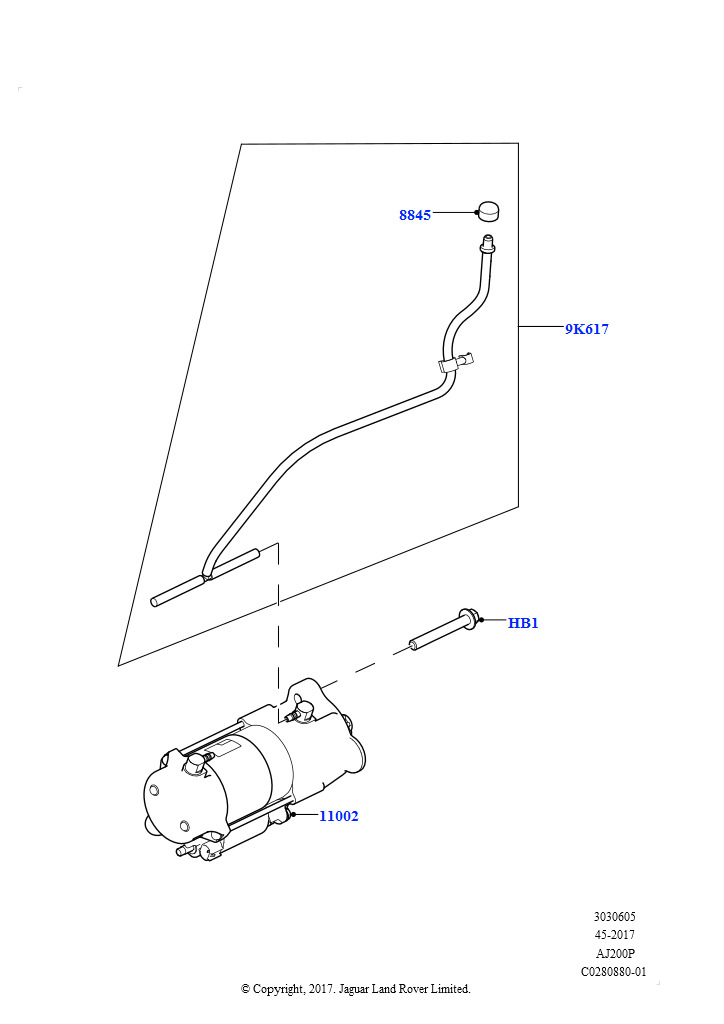 Стартер (Сборка на заводе в г. Солихалл, 2,0 л I4 High DOHC AJ200, бензин) Discovery 5 2017