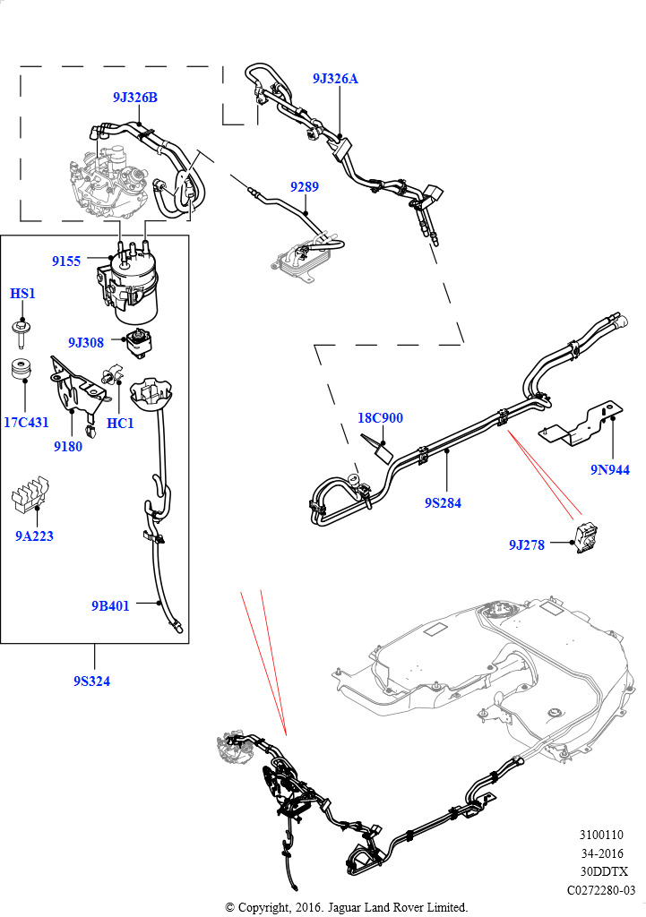 Топливные магистрали (Сборка на заводе в г. Солихалл, Передний, 3.0 V6 D Gen2 Mono Turbo, 3.0 V6 D Gen2 Twin Turbo, 3.0 V6 D Low MT ROW) Discovery 5 2017