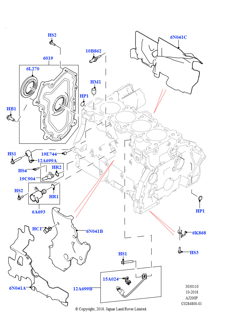 Блок цилиндров и заглушки (2,0 л I4 Mid DOHC AJ200, бензин, Страна изготовления — Бразилия, 2.0L I4 Mid AJ200 Petrol E100, Страна изготовления — Бразилия) Discovery Sport 2015
