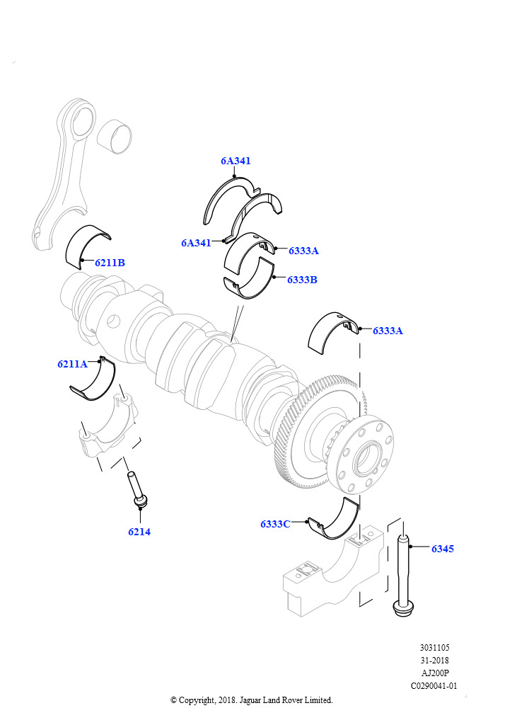 Коленчатый вал/поршни и подшипники (2,0 л I4 High DOHC AJ200, бензин, Сборочный завод Хэйлвуд, 2,0 л I4 Mid DOHC AJ200, бензин, Сборочный завод Хэйлвуд) Discovery Sport 2015