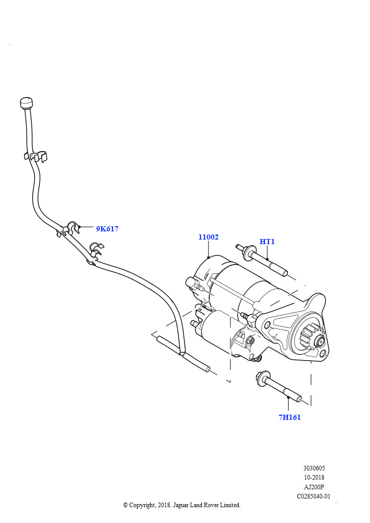 Стартер (2,0 л I4 Mid DOHC AJ200, бензин, Страна изготовления — Бразилия, 2.0L I4 Mid AJ200 Petrol E100, Страна изготовления — Бразилия) Discovery Sport 2015
