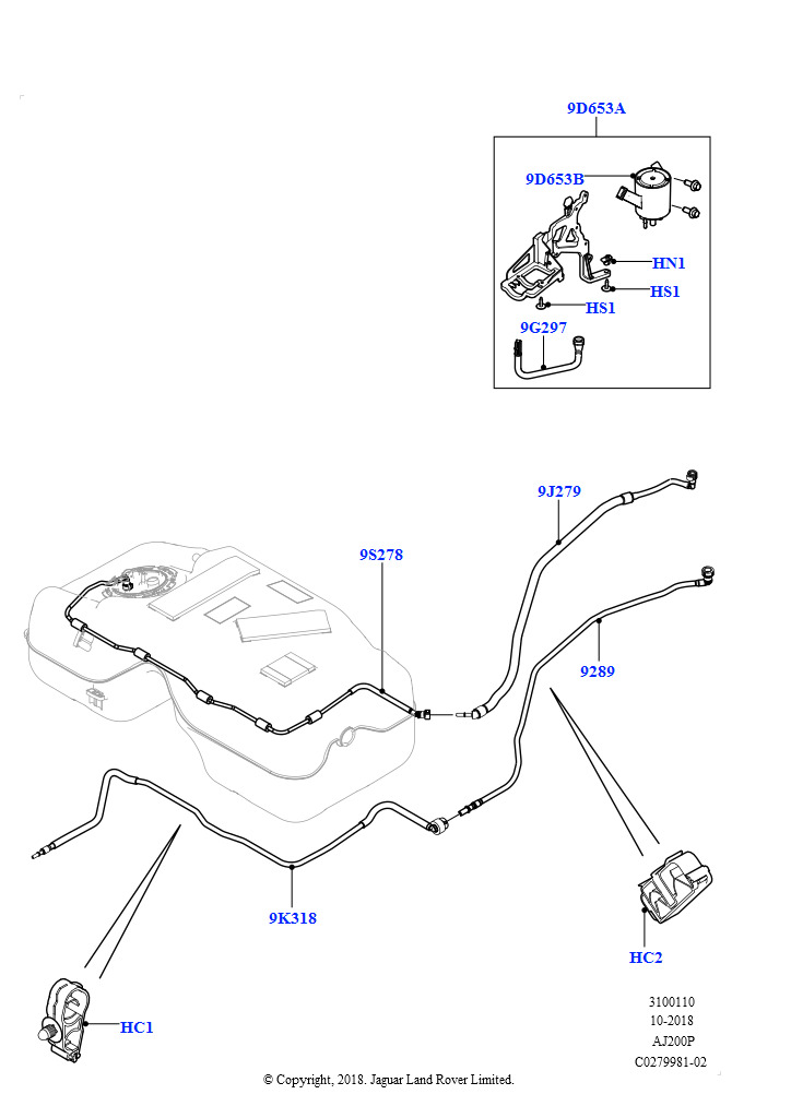 Топливные магистрали (Задний, 2,0 л I4 High DOHC AJ200, бензин, (-)"CDN/MEX/USA", Заливн.горл.топл.бака-неэтил.топл., 2,0 л I4 Mid DOHC AJ200, бензин, (-)"CDN/MEX/USA", Заливн.горл Discovery Sport 2015