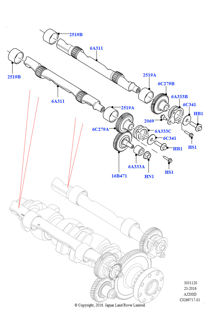 Валы и привод сист.уравновешивания (2,0 л I4 DSL MID DOHC AJ200, Страна изготовления — Бразилия, 2.0L I4 DSL HIGH DOHC AJ200, Страна изготовления — Бразилия) Discovery Sport 2015