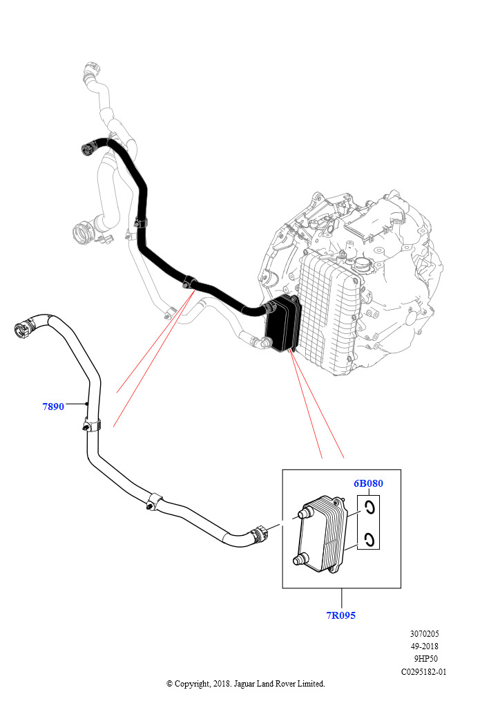 Системы охлаждения коробки передач (2.0L AJ20D4 Diesel High NFE, 9 Speed Auto Trans 9HP50, Сборочный завод Хэйлвуд, 2.0L AJ20D4 Diesel Mid NFE, 9 Speed Auto Trans 9HP50, Сборочный Discovery Sport 2015