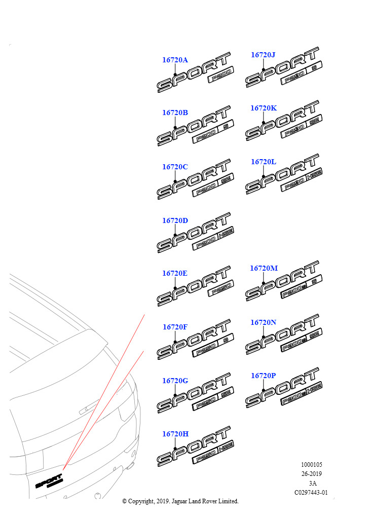 Паспортные таблички (Сборочный завод Хэйлвуд, Эмблема-БензиновыйДвигатель250 л.с., Сборочный завод Хэйлвуд, Эмблема — мощность бензинового двигателя 290 л.с., Сборочный завод Хэйлв Discovery Sport 2015
