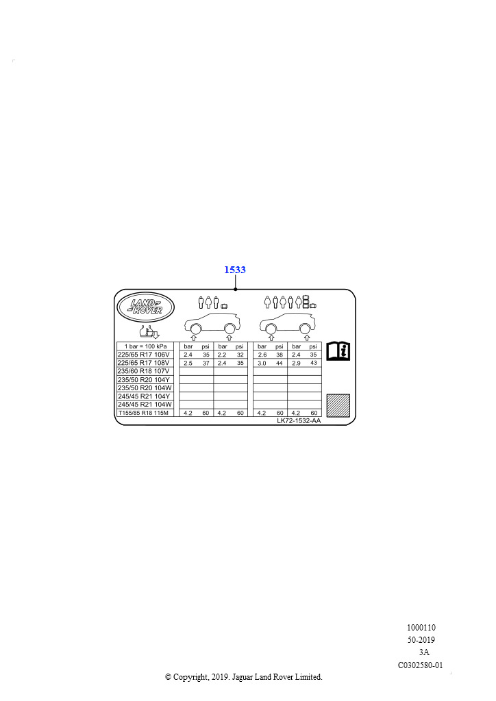 Ярлыки (Ярлык со значением давления в шинах, Страна изготовления — Бразилия) Discovery Sport 2015