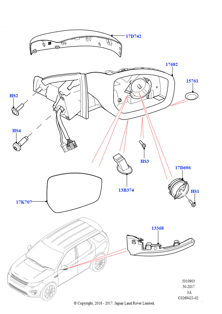 Наружное зеркало заднего вида (Страна изготовления — Бразилия) Discovery Sport 2015