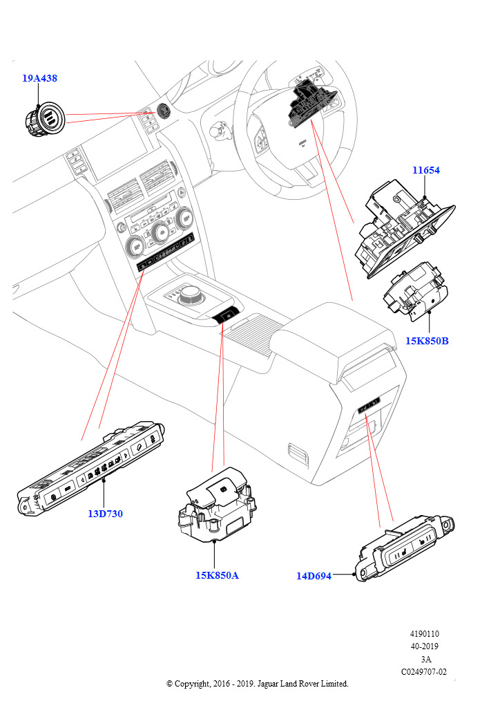 Переключатели (Панель приборов и консоль, Сборочный завод Хэйлвуд) Discovery Sport 2015