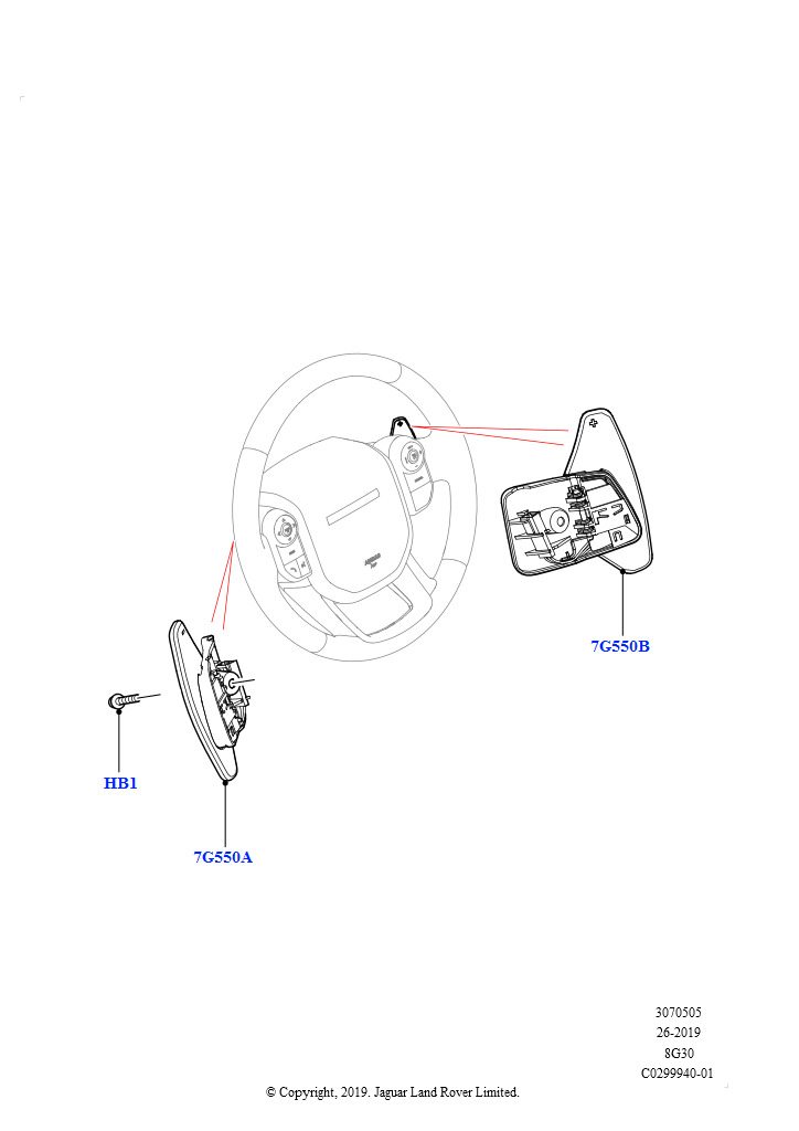 Перекл.пер.-Автомат.кор.пер. (Рулевое колесо, 1.5L AJ20P3 Petrol High, 8 Speed Automatic Trans 8G30, Изготовитель - Changsu (Китай), Подрулевые лепестки) Range Rover Evoque 2019