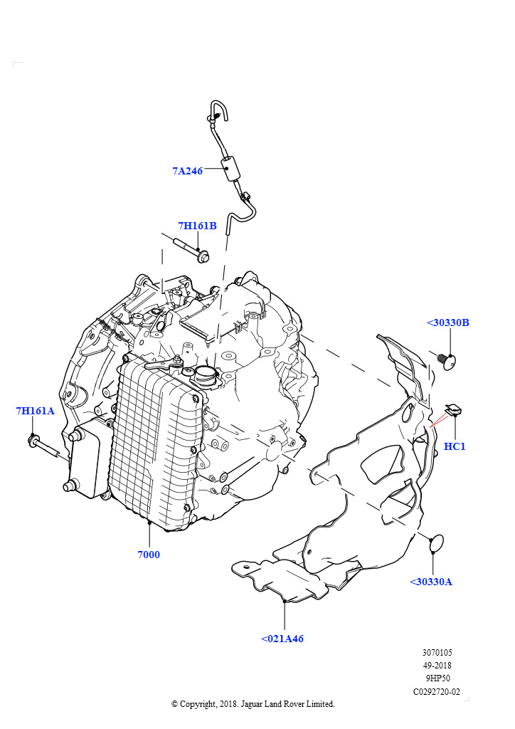 АКПП в сборе и привод спидометра (2.0L AJ20P4 Petrol High NFE, 9 Speed Auto Trans 9HP50, Сборочный завод Хэйлвуд, 2.0L AJ20P4 Petrol Mid NFE, 9 Speed Auto Trans 9HP50, Сборочный за Range Rover Evoque 2019