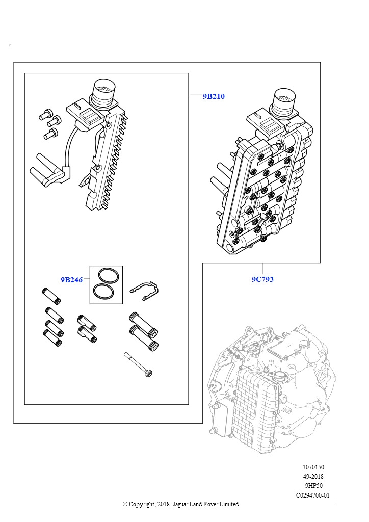 Блок клап.-гл.блок упр.и сервобл. (Комплект блока гидравлического управления, 9 Speed Auto Trans 9HP50, Сборочный завод Хэйлвуд) Range Rover Evoque 2019