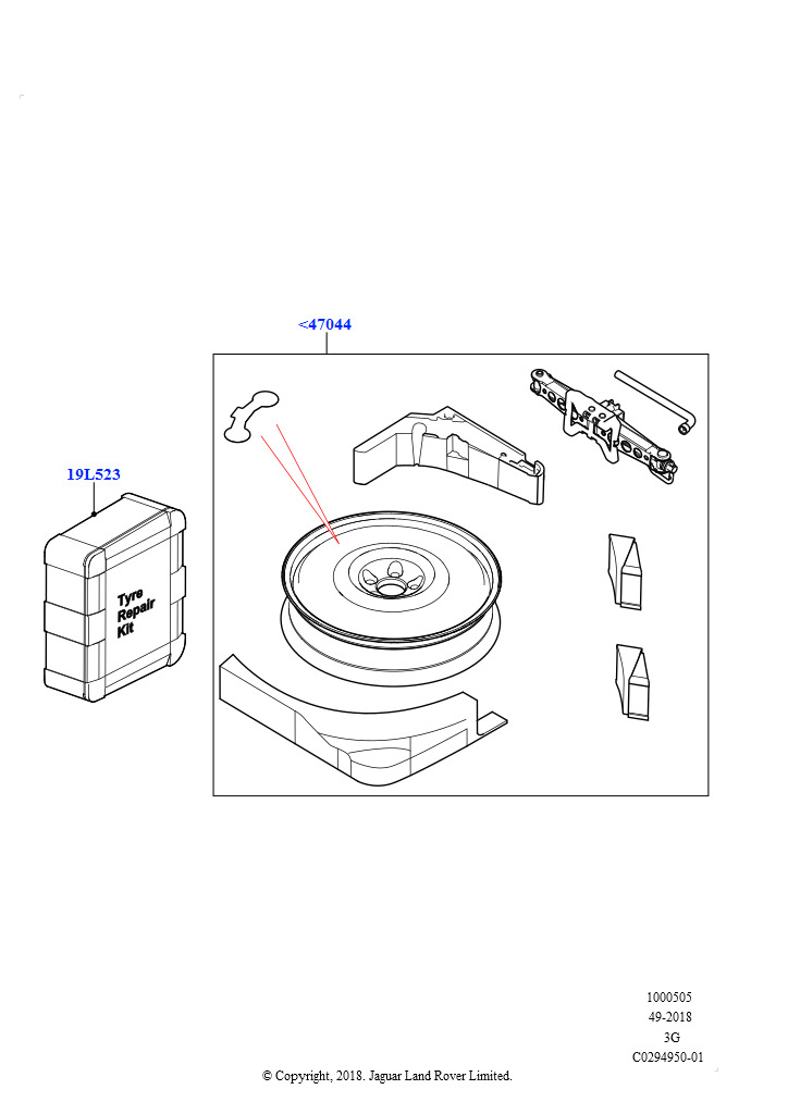 Колеса из ассортимента аксессуаров (Комплект для ремонта шин, Запасное колесо в комплекте, Сборочный завод Хэйлвуд) Range Rover Evoque 2019