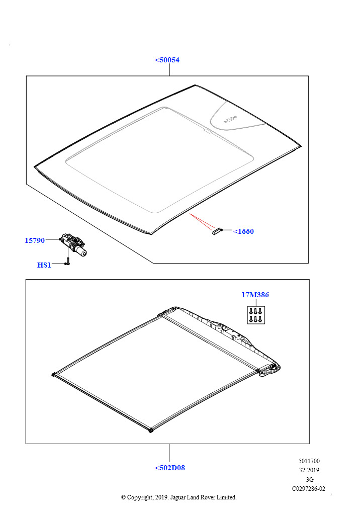 Панорамное стекло крыши (Панорамн.крыша-электропр./открыван., Изготовитель - Changsu (Китай), С модернизированн. панорамн. крышей, Изготовитель - Changsu (Китай)) Range Rover Evoque 2019