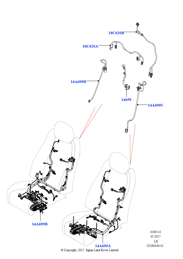 Электропроводка - Сиденья (Передние сиденья, RHD) Range Rover 2013