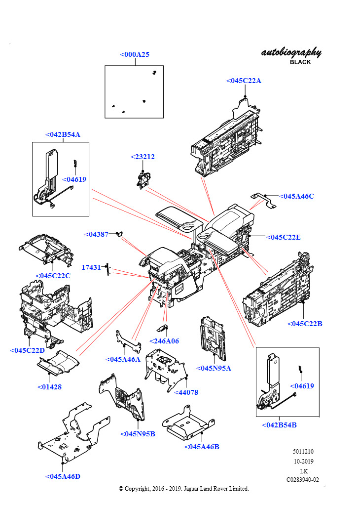 Напольная консоль (Задний, Эмблема Autobiography Black / SV Autobiography, Внутренние элементы, С 2 малыми раздельн.задн.сиденьями) Range Rover 2013