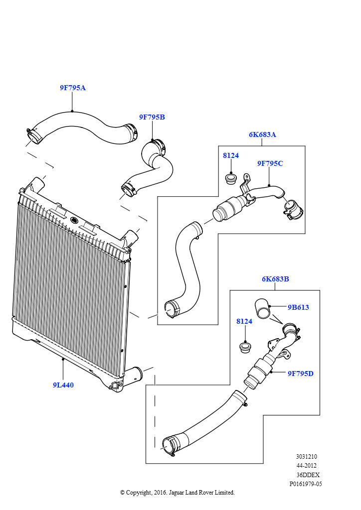Пром.теплообм/воздуховоды и шланги (3,6 л V8 32V DOHC EFi дизель Lion) RANGE ROVER SPORT 2005 - 2009