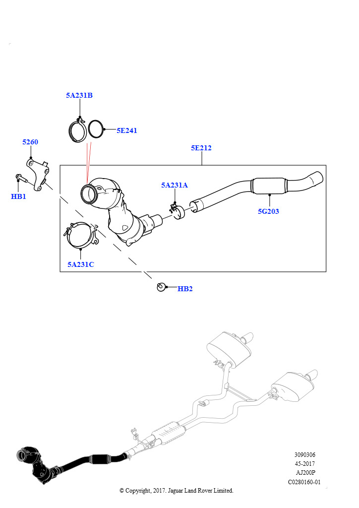 Передняя система выпуска (2.0L AJ200P Hi PHEV, Требования SULEV, 2.0L AJ200P Hi PHEV, Код выхлопа для Японии - DBA) Range Rover Sport 2014