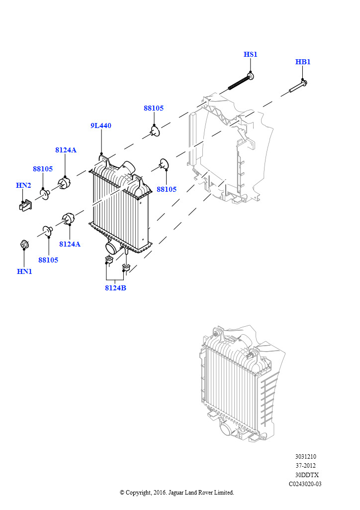 Пром.теплообм/воздуховоды и шланги (Промежуточные охладители и дефлекторы, 3,0 л 24 клап. V6 турбо дизель, станд. поток, 3,0 V6-гибридн.электр.дизельн.двиг., Дизель 3,0 л 24V DOHC Range Rover Sport 2014