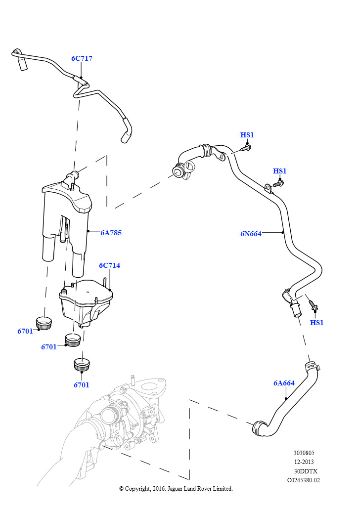 Сист.пониж.токс.выхл.-картер (Вентиляция двигателя, 3,0 л 24 клап. V6 турбо дизель, станд. поток, 3,0 V6-гибридн.электр.дизельн.двиг., Дизель 3,0 л 24V DOHC V6 TC) Range Rover Sport 2014