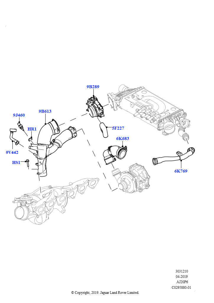 Пром.теплообм/воздуховоды и шланги (Воздуховоды и шланги, 3.0L AJ20P6 Petrol High) Range Rover Sport 2014
