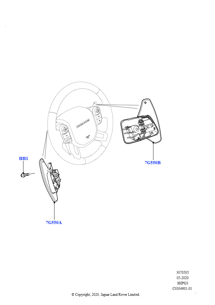 Перекл.пер.-Автомат.кор.пер. (Рулевое колесо, Сборка на заводе в г. Солихалл, 8HP Gen3 Hybrid Trans, Лепестковое переключ.передач-Noble, 8HP Gen3 Hybrid Trans, Подрулевые лепестки) Range Rover Sport 2014