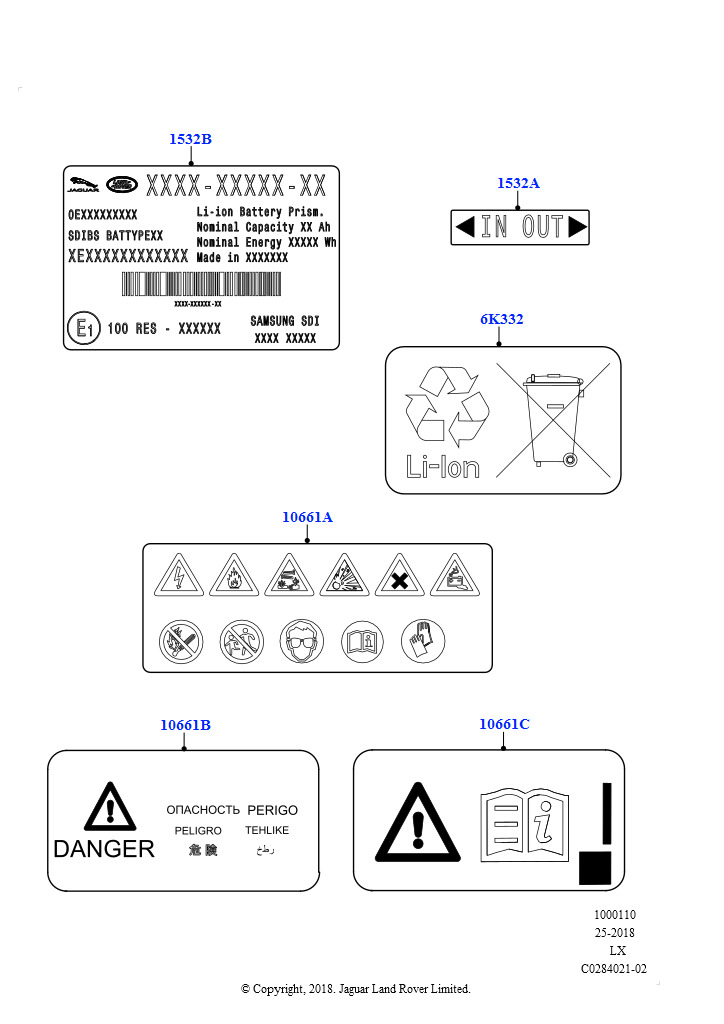 Ярлыки (Тяговая батарея, 2.0L AJ200P Hi PHEV) Range Rover Sport 2014