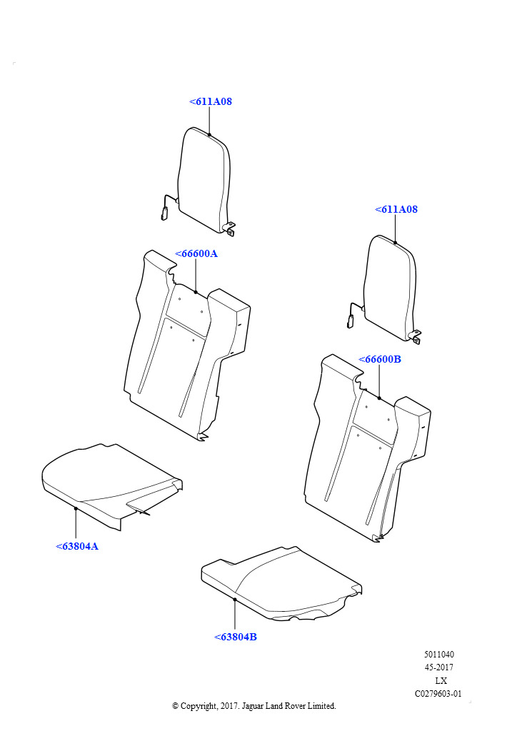 Обивка задних сидений (3-й ряд, Полуанилиновая перфорированная кожа, С 7-местной конфигурацией) Range Rover Sport 2014